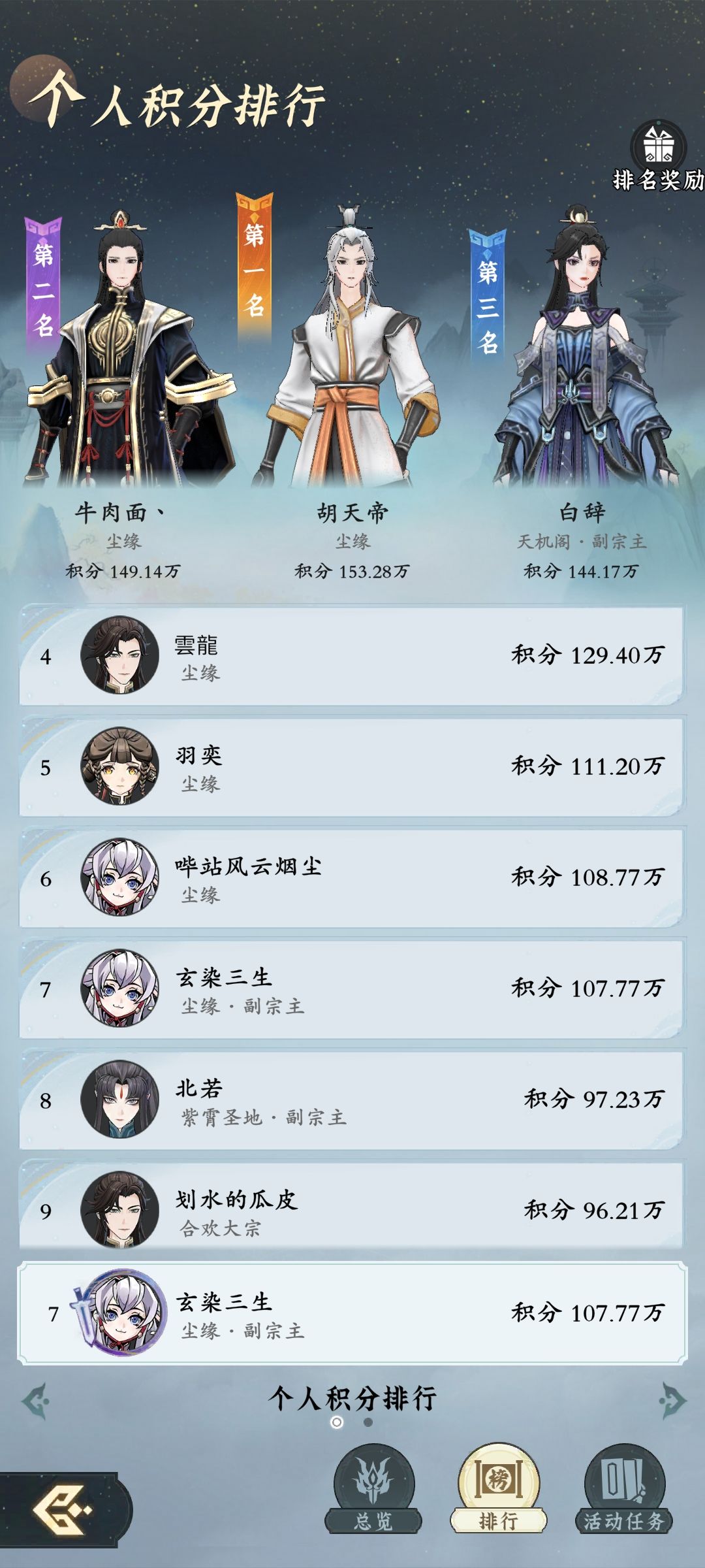而在这次对敌之中,又以《胡天帝》《牛肉面》《白辞》三位尊者的贡献最深。他们以浩荡神威,昭昭武德雄居于个人榜前三之尊位