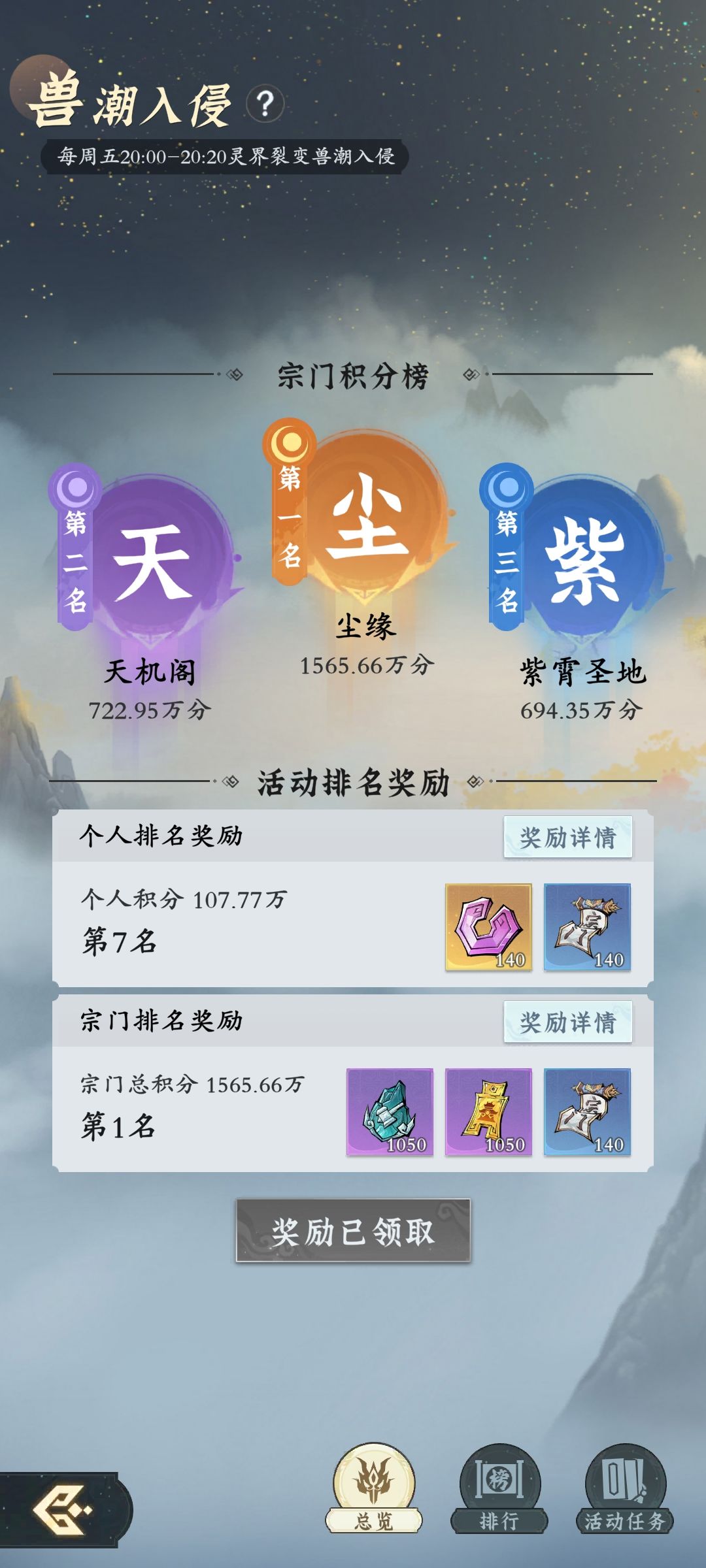 在此战役中,《尘缘》仙宗无愧于他众宗之魁首的地位,对兽潮进行了最为强烈的重创。而在其后亦有《天机阁》《紫霄圣地》两大仙宗与其余各宗门鼎力相助。使得天下得之安宁。众生对此无不敬仰!