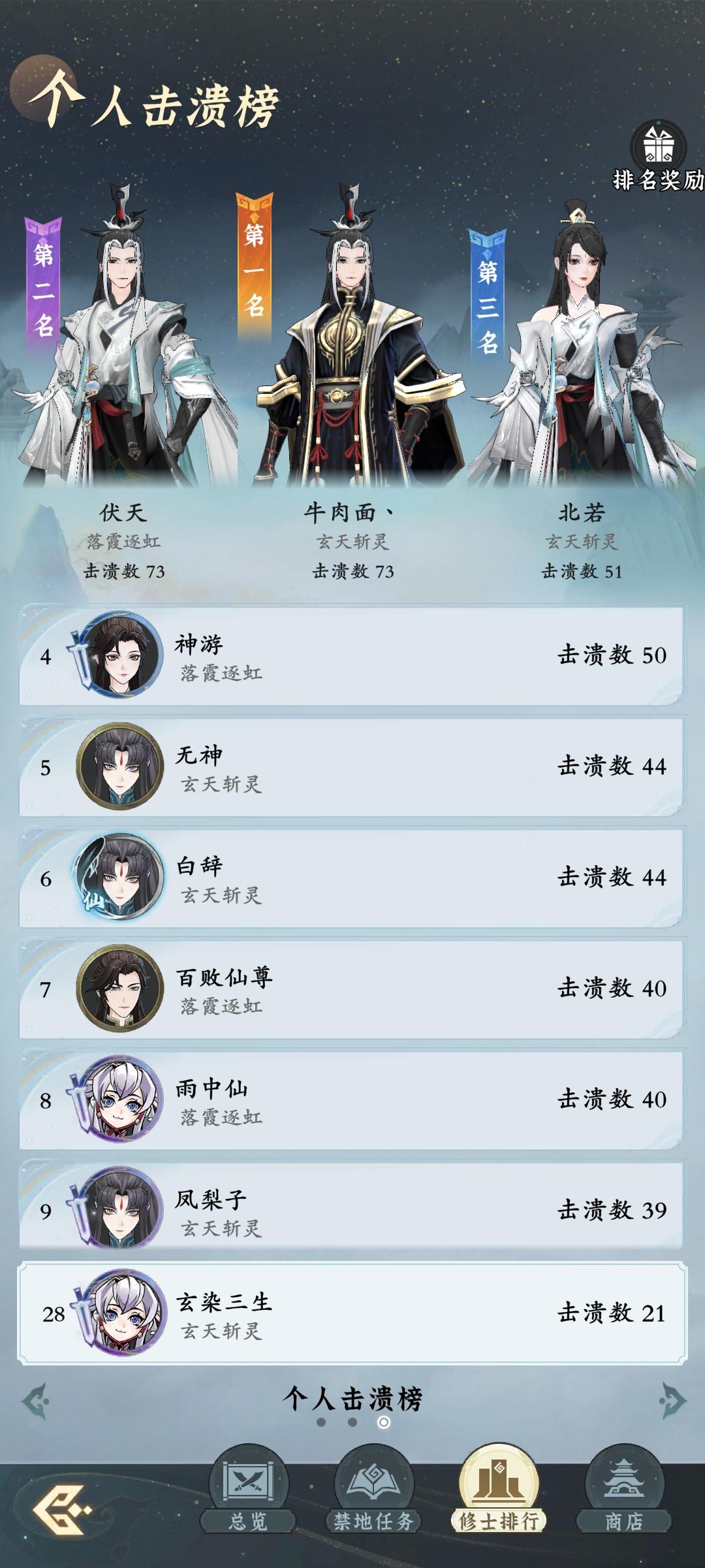 可以看到是非常夸张的战绩,且个人积分榜的前三位不仅来自同一位面(玄天斩灵),甚至来自于同一宗门(尘缘)战绩更是遥遥领先,真可谓是:一身转战三千里,一剑曾当百万师,万家灯火尘世间,共渡琼霄缘起时。