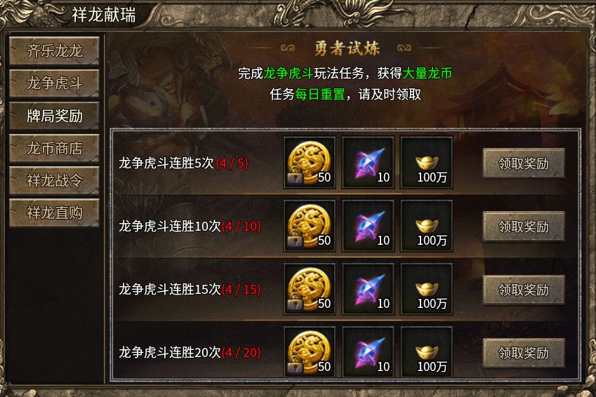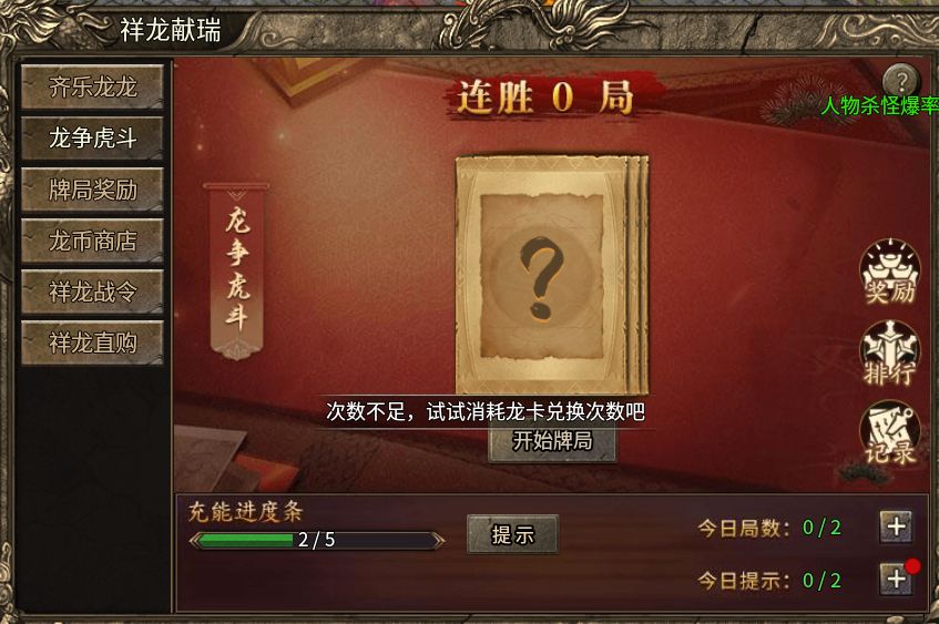 1、每日可免费参与两次龙争虎斗活动,并可通过齐乐龙龙中获得的龙卡参与活动