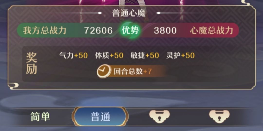心魔挑战:每提升一个大的阶段,就会有一次心魔挑战,通关挑战后能获得大量属性提升以及行动回合数提升,难度越高,给的奖励提升就越大