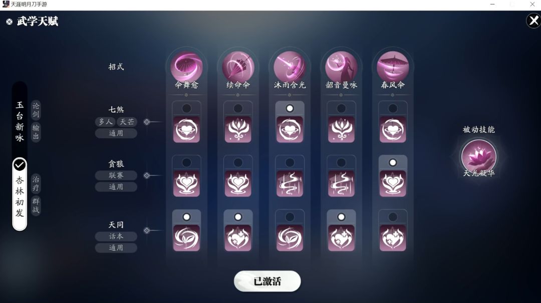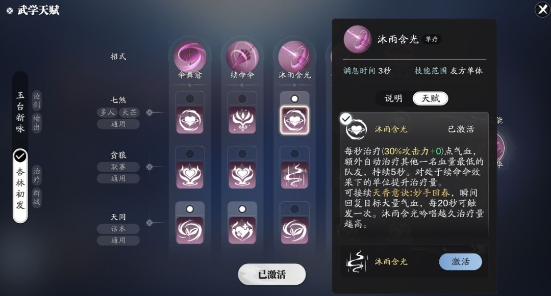 在副本中治疗方案中,我们选择杏林初发套路,天赋方面我们33132的天赋加点,接下来我们先来一起了解一下技能吧