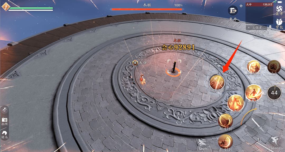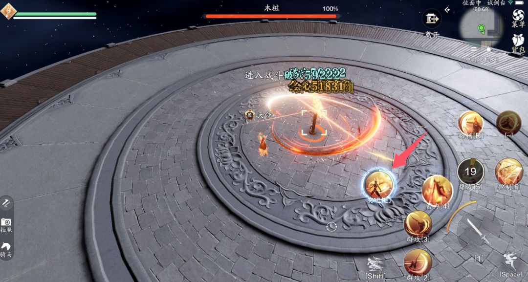 对目标位置造成多次伤害并且释放后增加50点凤仪,触发二段千相。如下图箭头所示,