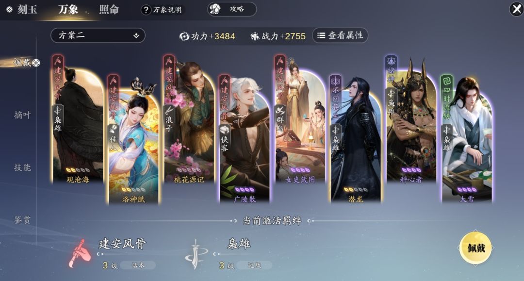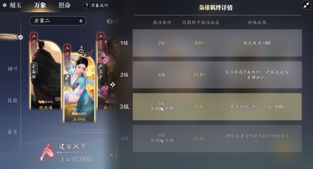在副本中,我们需要加强输出能力,建安风骨可以为我们带来不错的额外伤害,而枭雄中则可以为我们带来常驻增伤效果。