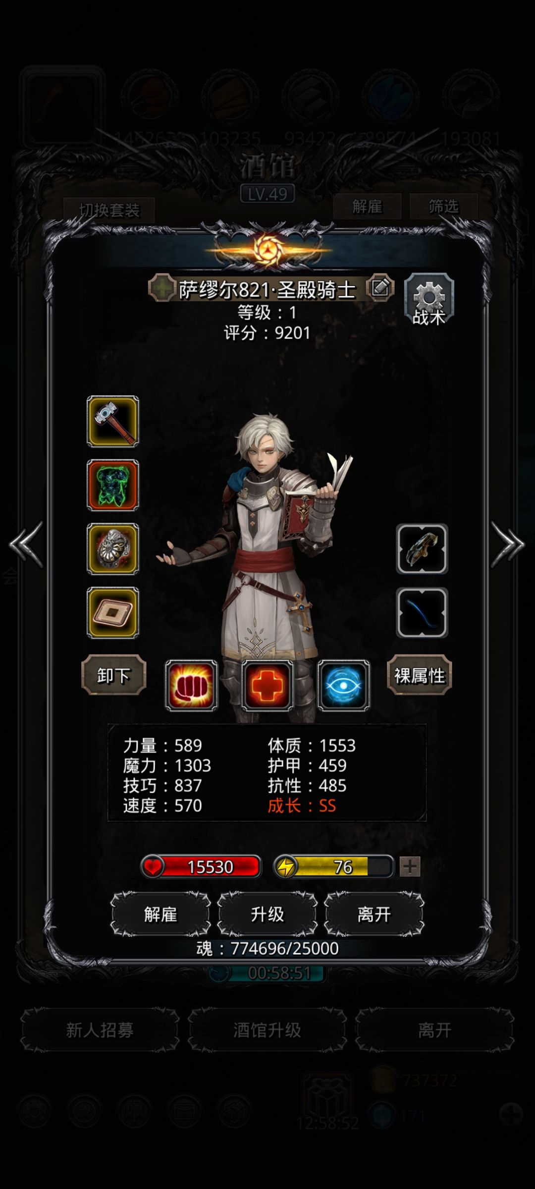 正常玩的话有圣庭和百臂就比较容易过了,奈何我一个都没有,如果有和我一样的小伙伴,想刷脸就把黑星给火法,巫医用月杖就行。