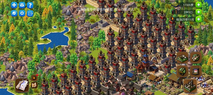 然后:重点!造塔,玩塔防游戏,进来的路铲了给他来几个弯,用墙堵住没有路的地方。调高工资,让王派兵来打,每打赢一波,王的好感度都能提高到50