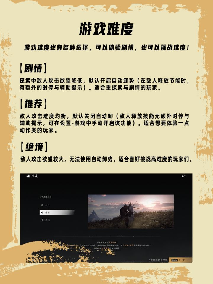 💕而游戏难度建议选择推荐,适合想体验动作类的玩家,觉得有难度游戏中也可以再次开启自动卸势功能