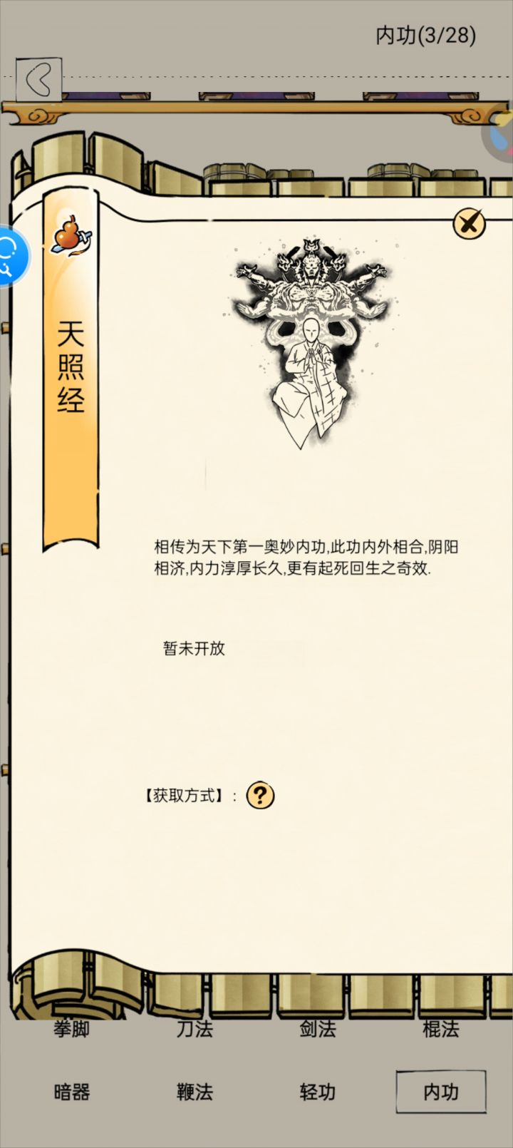 受到致命攻击时会驱散身上所有负面效果并回复一定血量(回复血量随等级提高提升比例)。这个没啥多说的原著中就有的武学效果肯定会做进来。
