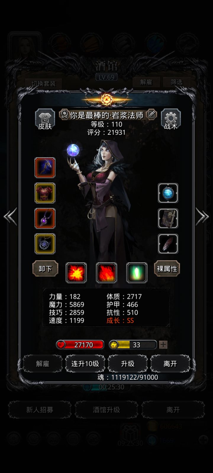 满锻,5柱80(战士才70没资源升),夜魇特效2.85(战利品10.7物伤9速,没用手套那套配装是因为没有手套),法师特效14.2(战利品10单吸,面板命中50)。