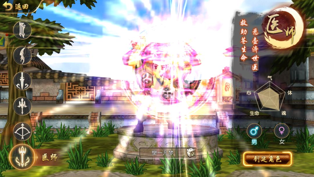 游戏提供了刀客、剑士、弓手、枪客、医师和琴师六大职业供玩家选择。