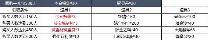 【活动简介】活动期间内,道友们可购买活动界面的团购商品。当购买团购商品的人数达到一定数量时,购买过该商品的道友们可以额外领取相应奖励。