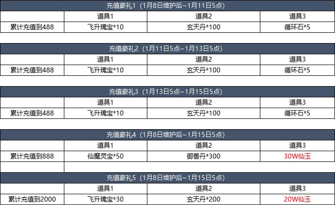 【活动简介】活动期间累计充值达到指定金额即可领取惊喜礼包!