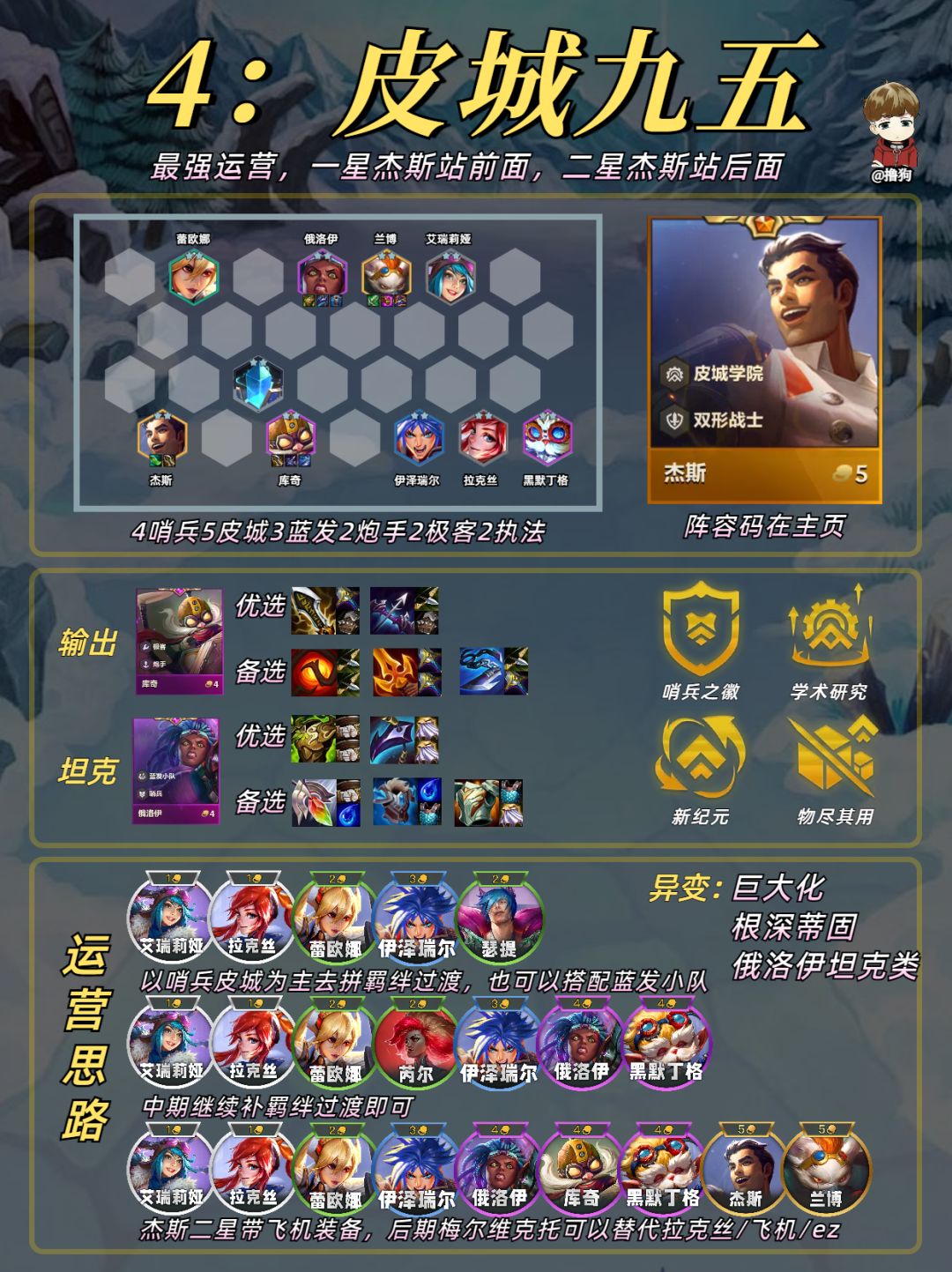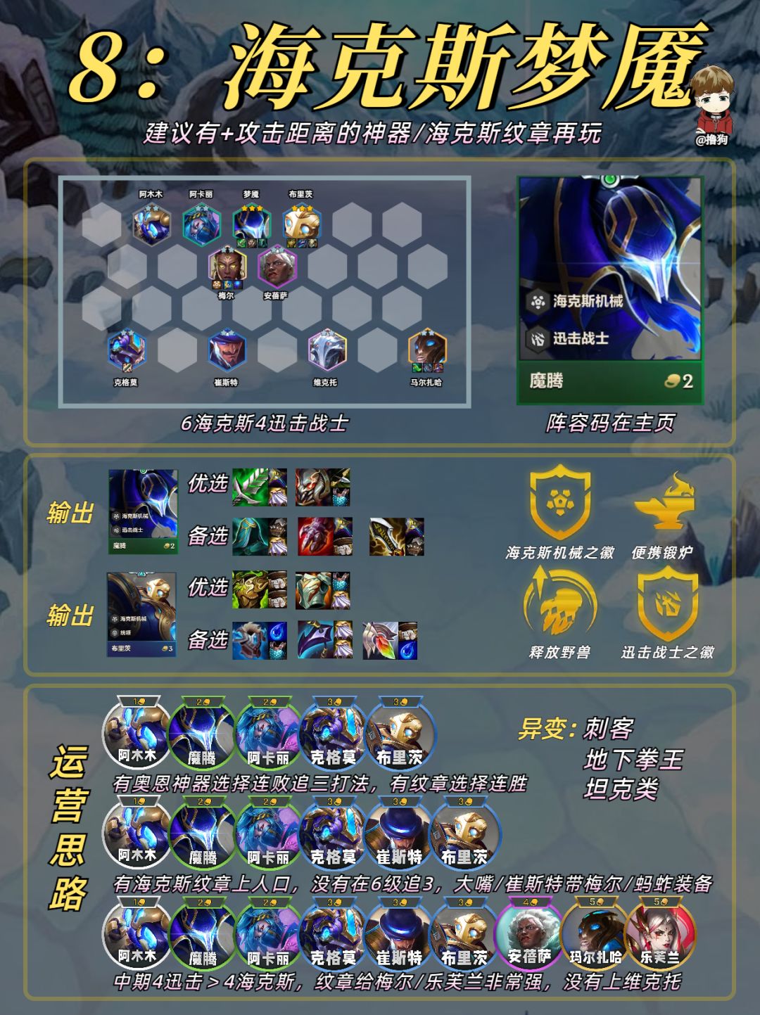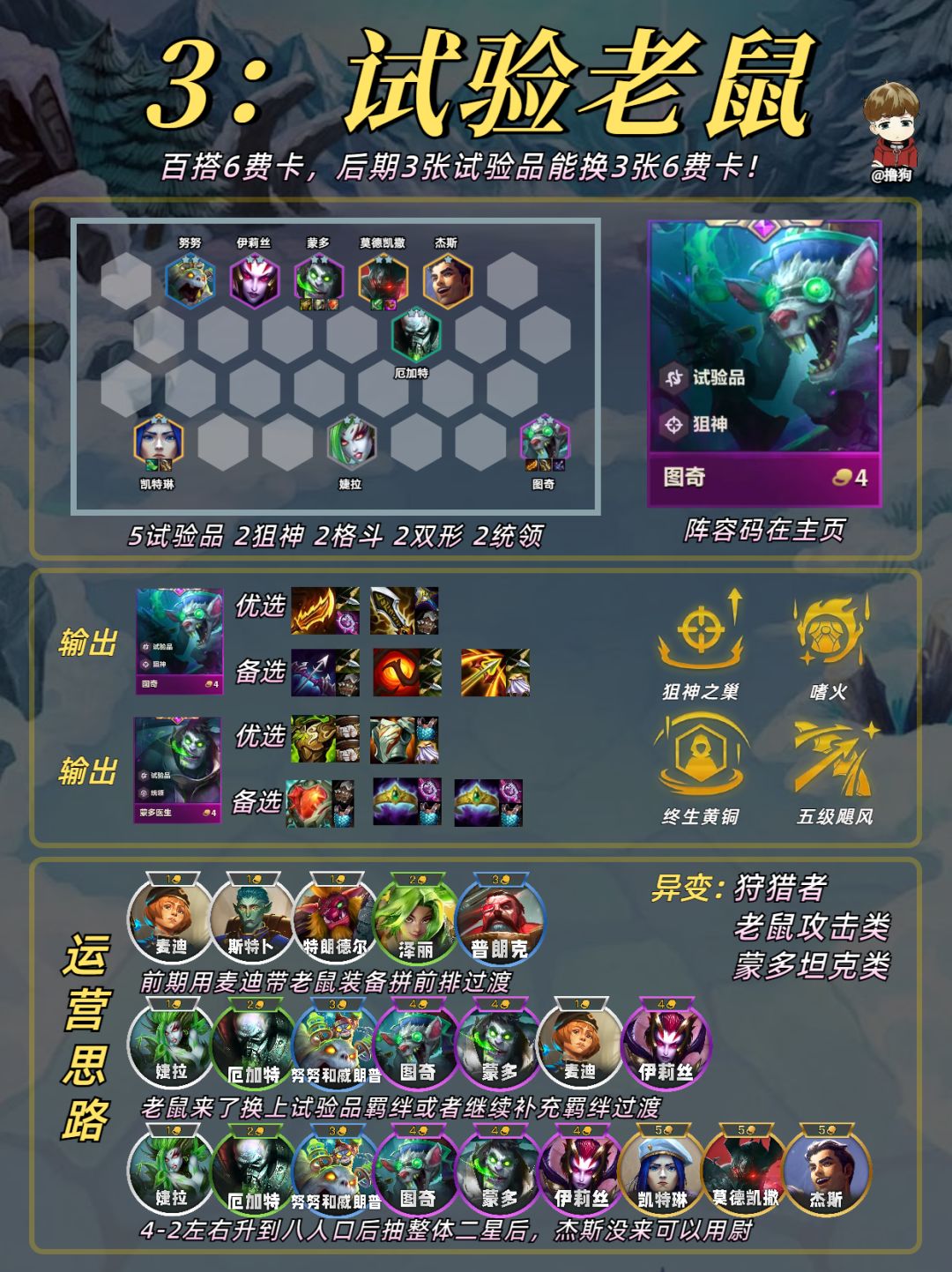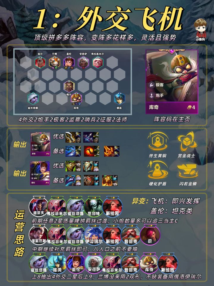 公众号爱下棋的撸狗有全部阵容攻略及代码,每日更新阵容榜单,下棋攻略