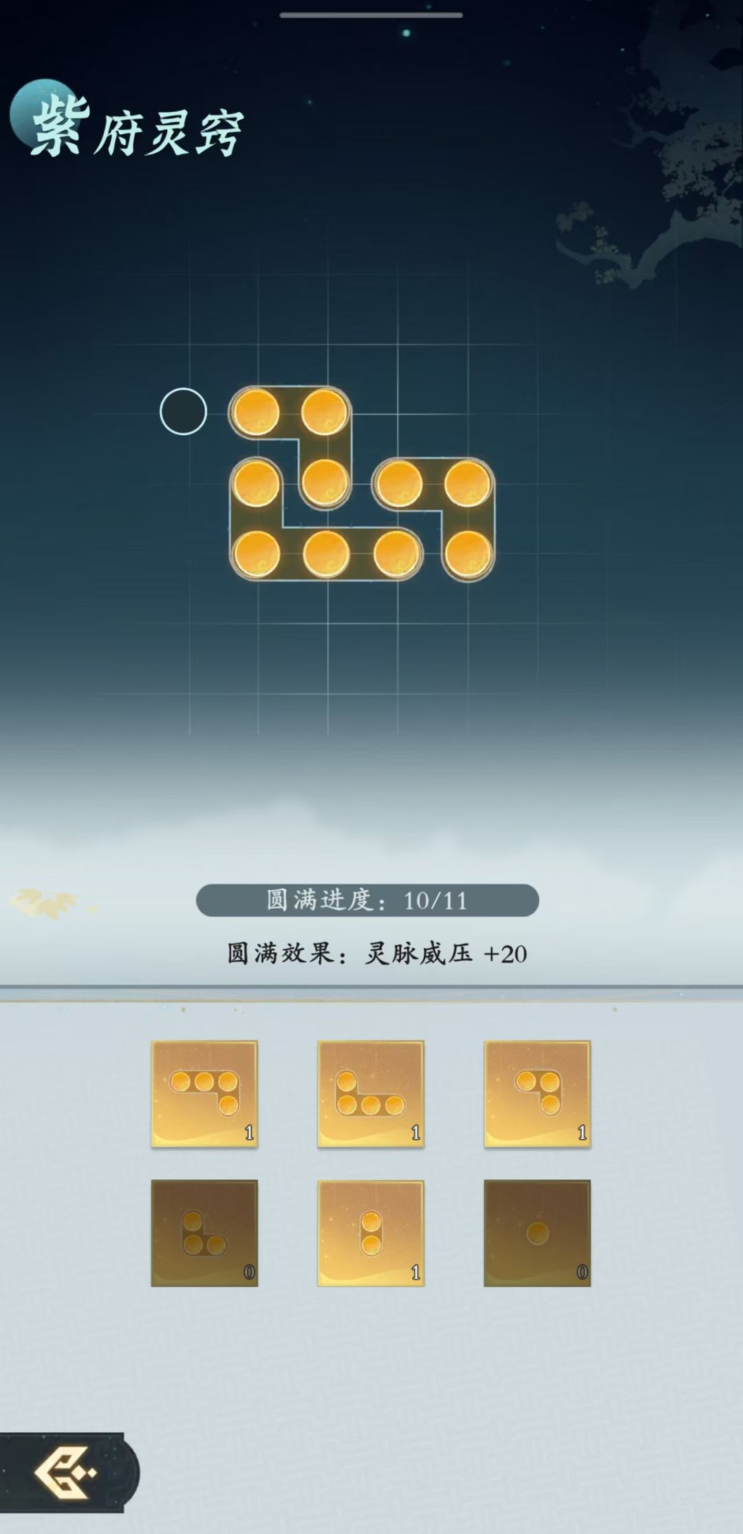 灵脉由下图所示,需要用兽元将所有格子填满即可突破。兽元可以在灵渺界抽取和兑换,一般到差一点的时候再去按照需求兑换。灵脉突破可以获得新的灵兽外观。