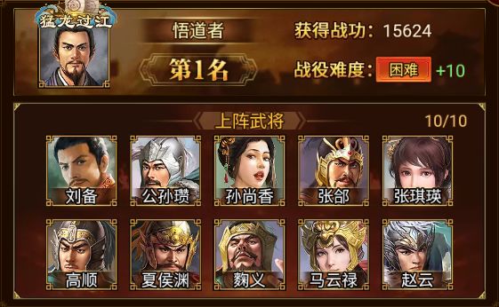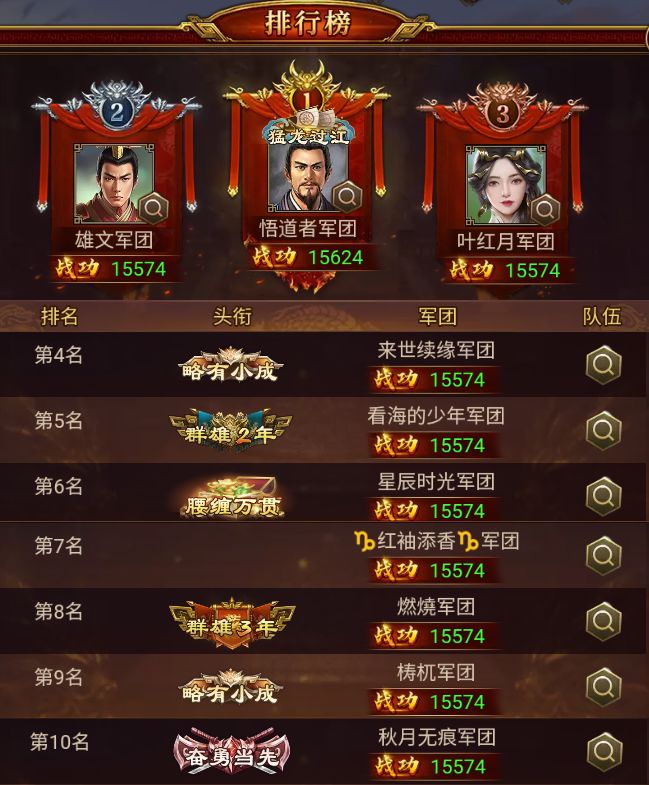 其中,悟道者 军团以 15624 的战功,成功创下益州之战最高战功新纪录,恭喜!