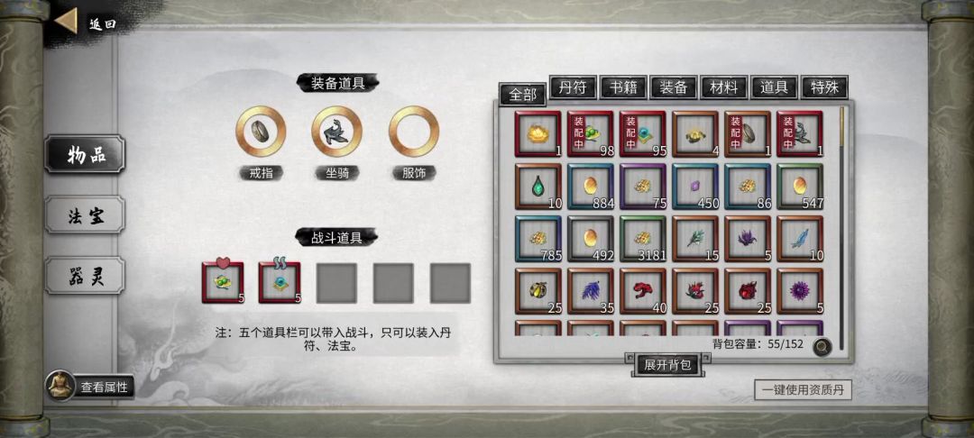 先把各个属性所对应的道界石都刷取一些,最好每样刷取一千以上,用不着超过两千。