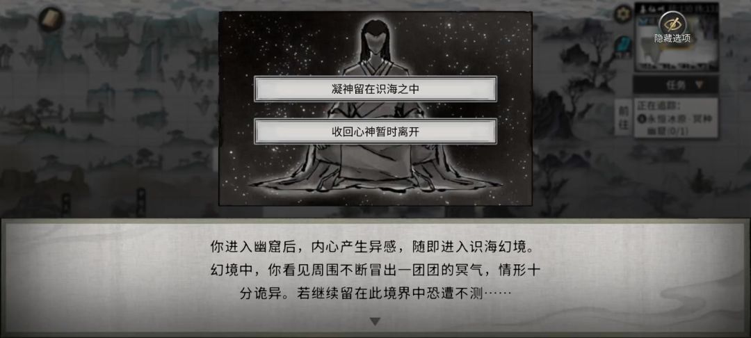 与幽窟交互后发现这个与之前的震鸣之墟一样,凝神留在识海之中,然后进入副本里面打怪,通关之后才可以获得第四个突破材料。