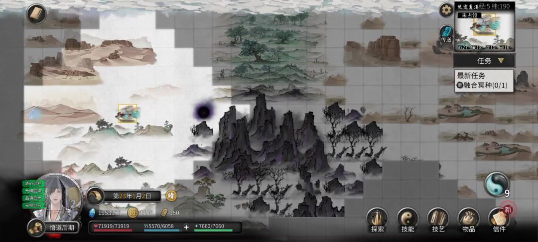 与夸父对话后我们就不用管这个任务了,后面时候到了会自动触发后续剧情,接下来我们来进行化神→悟道的突破流程。