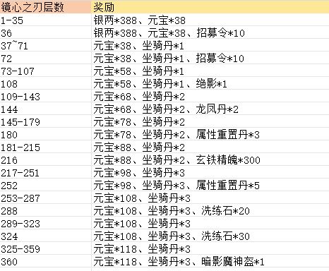 镜心之刃奖励