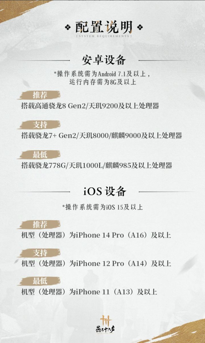 《燕云十六声》设备要求: