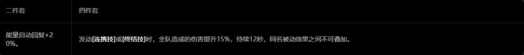 > 河豚电音*2 (穿透率↑ 8%)/ 折枝剑歌*2 (暴伤↑ 16%)/ 静听嘉音*2(攻击力↑ 10%)/ 激素朋克*2(攻击力↑ 10%)