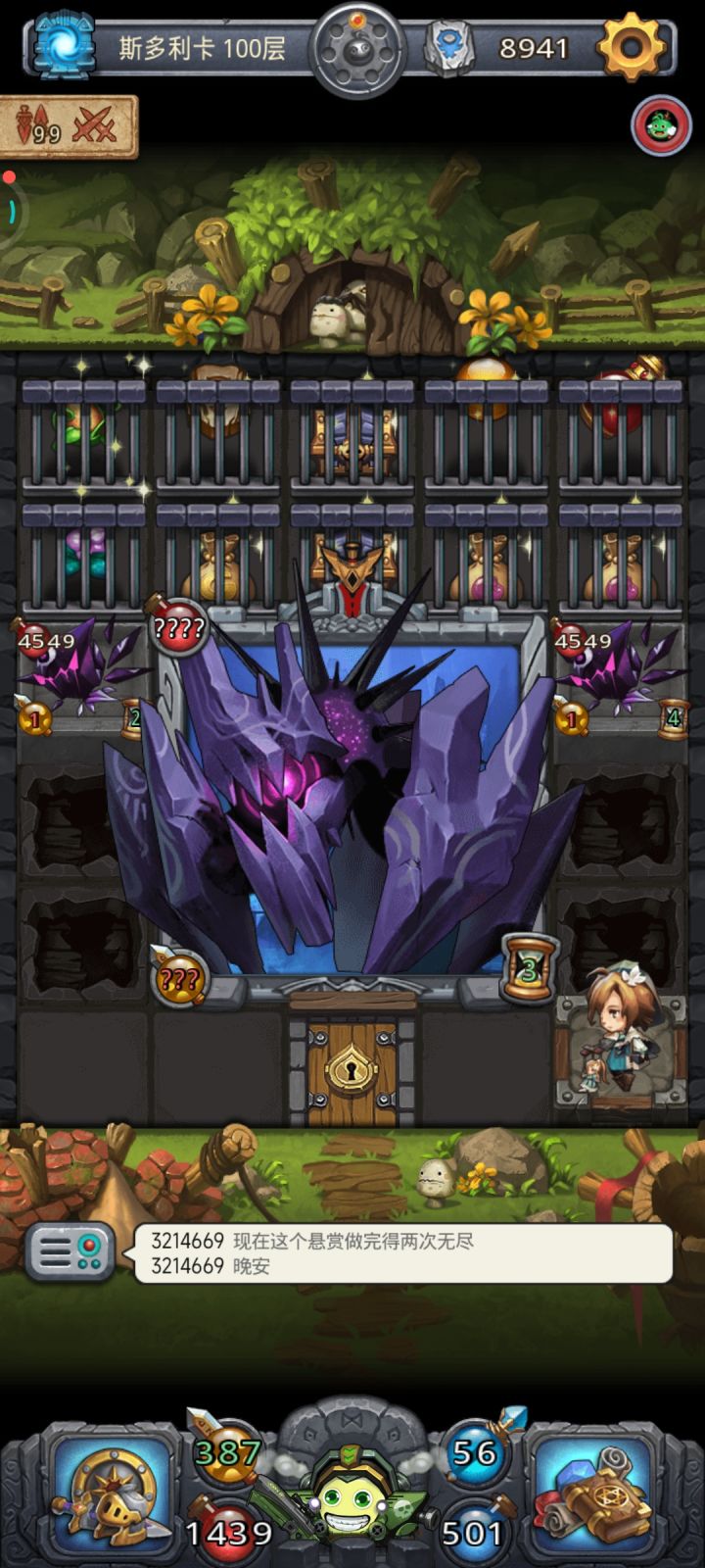 10-80层boss兴奋剂配合龙威很容易过。尽量在前面50层用大预言术刷出个重生,90层boss时有个容错。