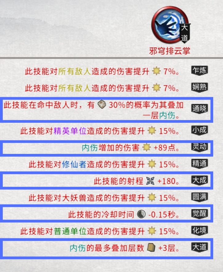 虎魄龙魂(攻击频率)、凝元寂灭(保命容错)、杀心骤起(提升输出)、水木长生(神通免前置)、随心而御(配合云梦衣控场打伤害)、穿云电闪(后期固定增伤25%)、四灵共生(绝技多次释放)