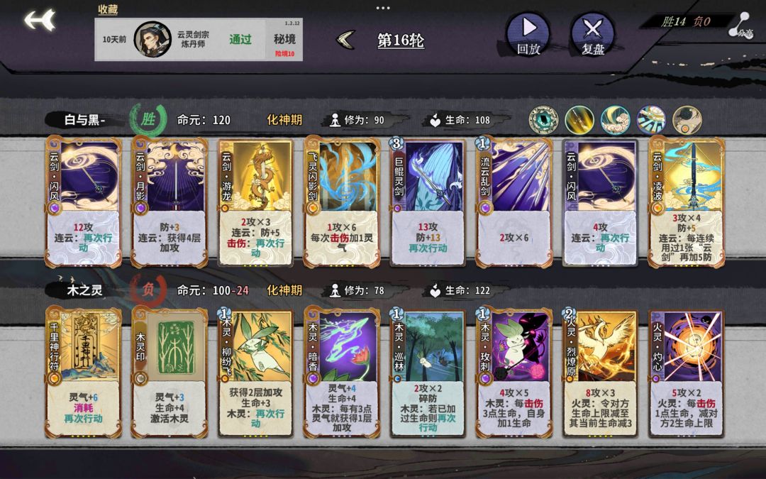 丹副职不太好打的一个BOSS,第15轮阵容的土之灵有一动幽绪,二动还有土阵的8点防,只有第二个公式能够实现三动杀,第七轮大道碎片事件知道BOSS是土之灵之后记得留个灌注或者飞云丹什么的。当然如果玩的是田吃点加攻草毒草什么的也能三动杀,第16轮的阵容月影后面平铺多段然后上个护体丹就行,对面只有合八荒和绝壁加的防比较多,而且出伤慢,然后凌波可以对位一下对面流沙绝壁什么的。