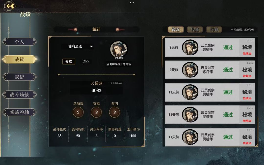 最近一直在用牧逸风打全胜通关秘境10的10个BOSS,打了几十局发现玩云剑打秘境是真的好打,基本上都是无脑通关。