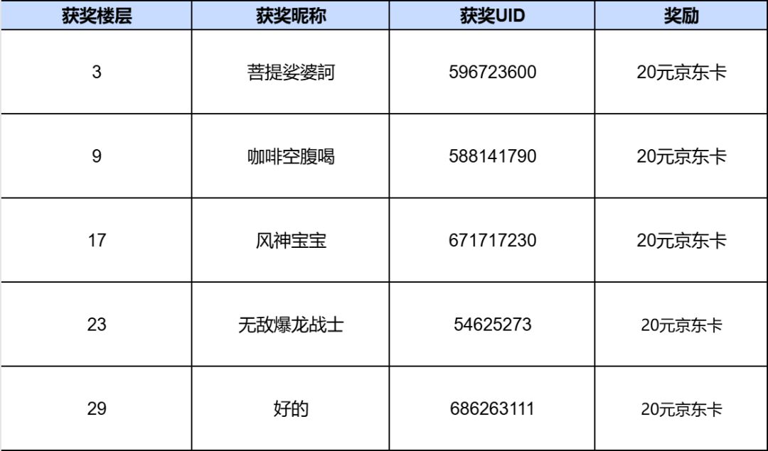 感谢大家的积极参与!恭喜以下玩家获得奖励。