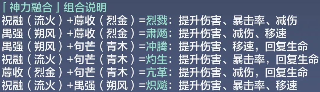 而“见则大旱”的能力,也让鸣蛇掌握了炎燎之力。当旅者与鸣蛇交互,会使旅者每隔一段时间就获得一种随机「神力融合」效果,每隔60秒自动触发一次,持续5分钟。