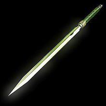 青锋宝剑,又名“青云剑”,持有者是魔家四将之一的魔礼青;剑上有符印,中分四字:‘地、水、火、风’。风乃黑风,内有万千戈矛,若人逢着此刃,四肢成为齑粉。若论火,空中金蛇搅绞,遍地一块黑烟,烟掩人目;烈焰烧人,并无遮挡。十分利害。