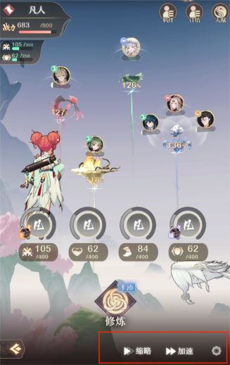另外,开启下方的缩略、加速功能,可以快进过场和对话,加快养成速率。