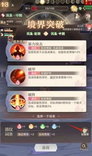 同时获得器纹、天赋、绝技等好处,大人可以按照乌鹊推荐的进行选择,也可以根据自己的搭配进行调整。