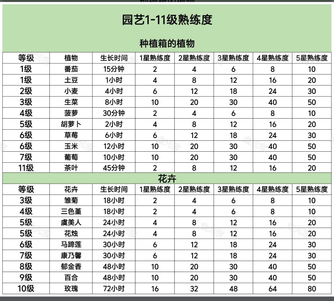 最新园艺1-12级价格利润熟练度汇总统计