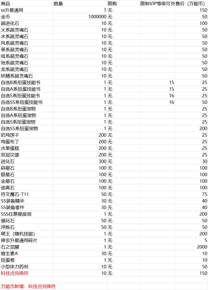 6. 万能币新增科技点兑换符,兑换比列为10:150