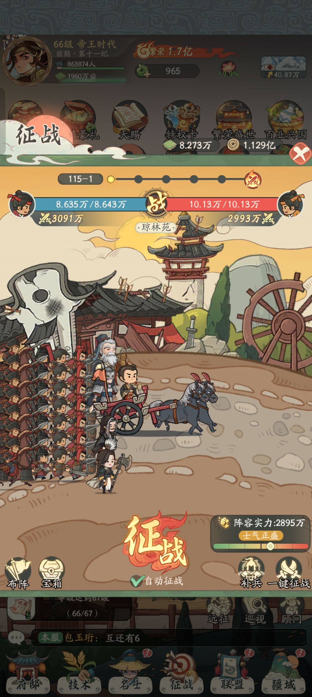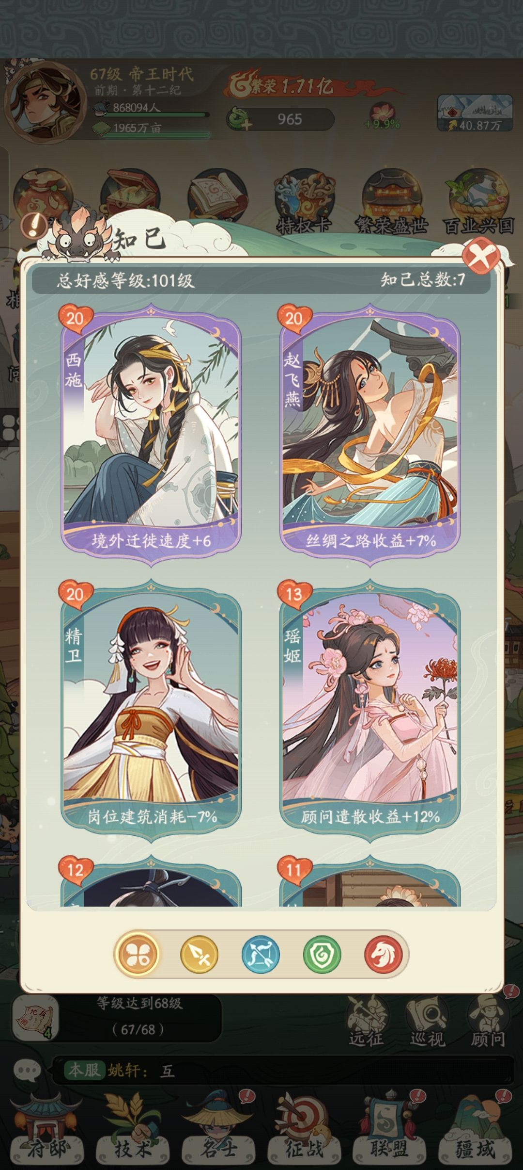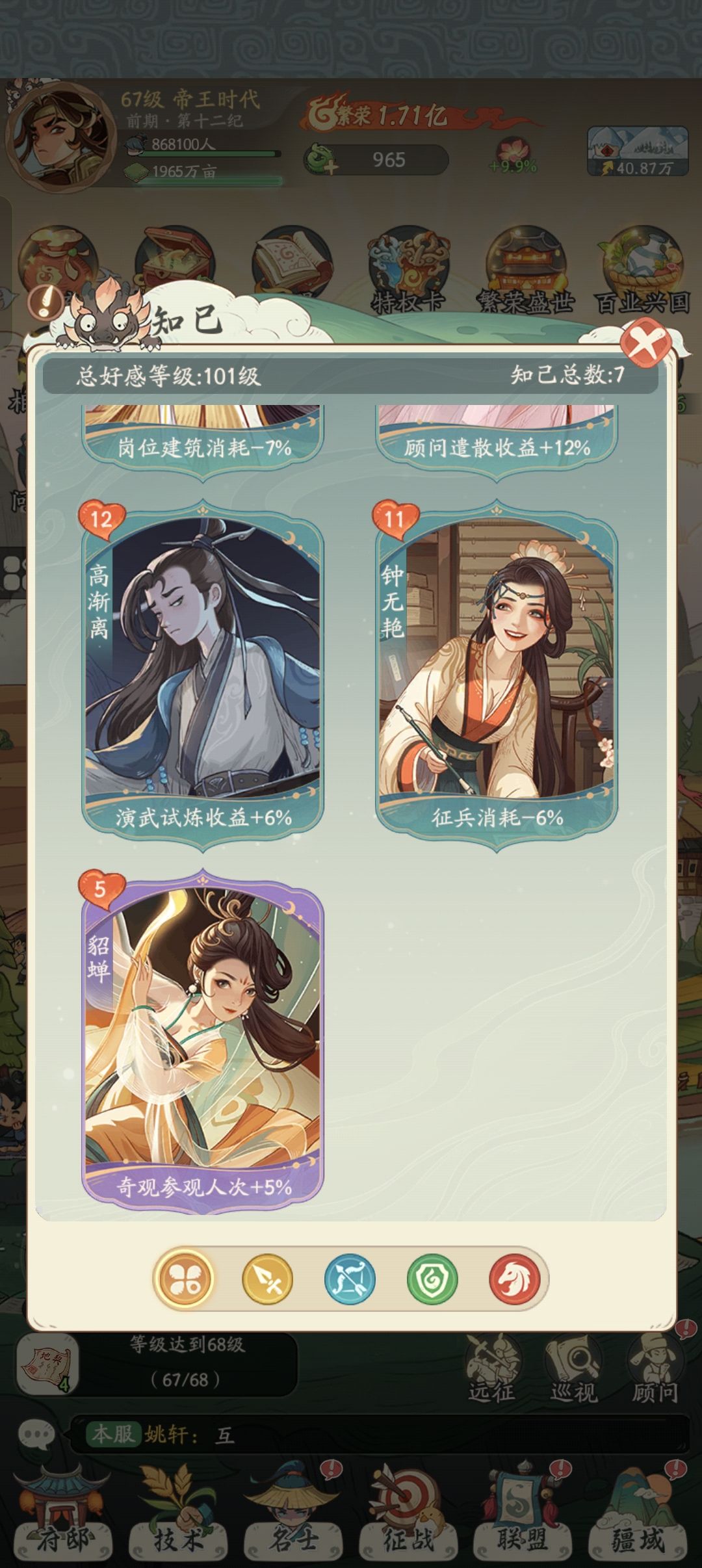 肝了五天的战斗成果:帝王前期(67级),繁荣度:1.71亿
