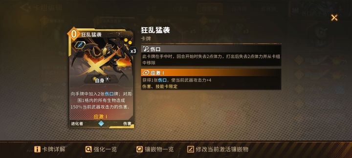 本人萌新,很喜欢玩虫子流,但是虫女目前有点累人,试了下伤口流虫子,很好用,杀人一人一刀!杠杠的,开局就带这几个卡,带了两个狂乱,装备随便找了一个,我也不知道用什么。但是这套打困难还是一点问题都没有的,有兴趣的朋友可以感受一下,开局进图,什么卡都不拿就拿狂乱,和镰刀,剩下在多拿一张神经,也就够了,然后删了普通卡。见到怪,等一回合,等他们距离靠近点,然后上去,开神经,开天赋技能。然后上两个怪中间,开狂乱,没死的就再补一刀普通攻击,和镰刀,完事!