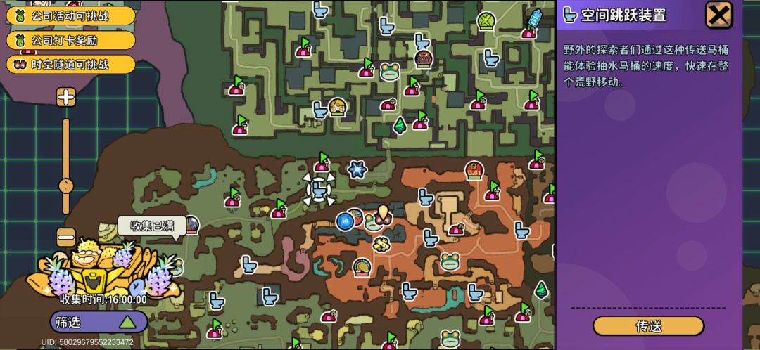 而且马桶传送属于无损传送,不收取任何“费用”,并且无使用次数限制,只要你不想跑了,就可以打开地图,选择最近的马桶,进行快速传送。
