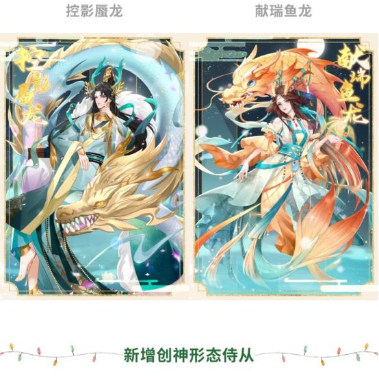 神龙新增2个特殊图鉴:“控影蜃龙”、“献瑞鱼龙”,集齐对应图鉴碎片即可解封,解封后通过传召获得神龙血统凰储时,有概率获得对应特殊图鉴凰储