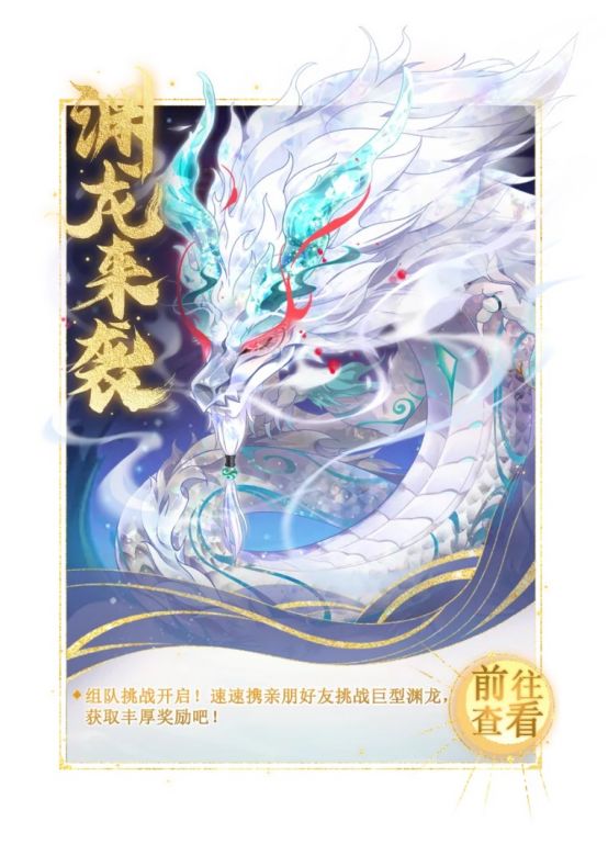 7、此次更新后组队挑战渊龙,达成【渊龙再临】活动中“组队竞赏”的相应成即可领取道具筑梦之星、举贤书、邀贤帖