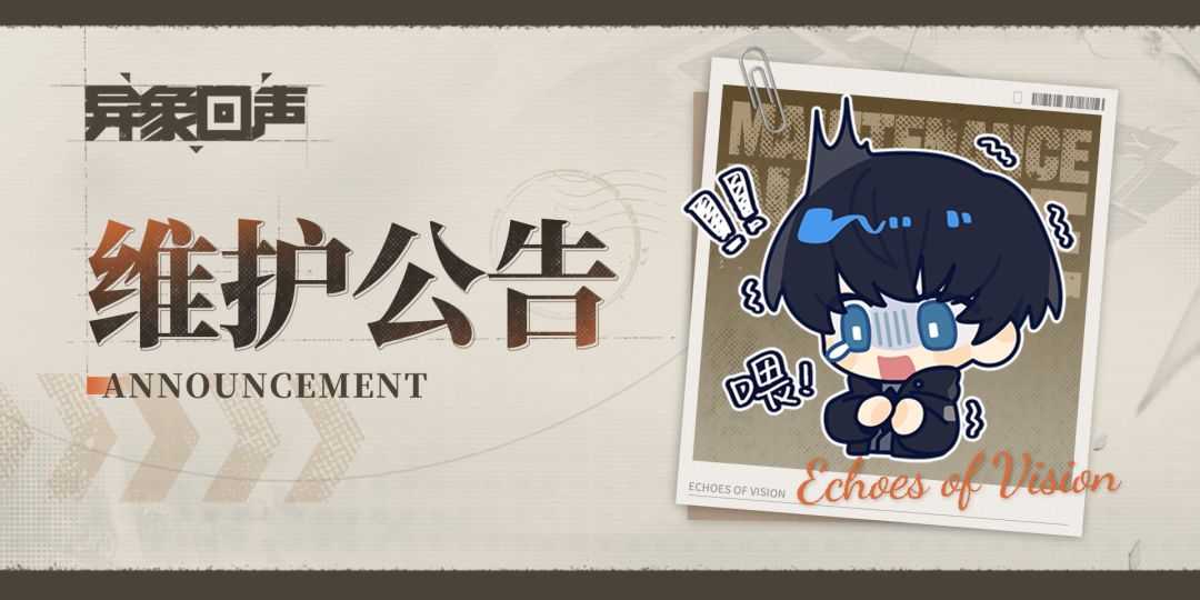 《异象回声》将于1月8日19:30左右进行一次闪断更新维护。