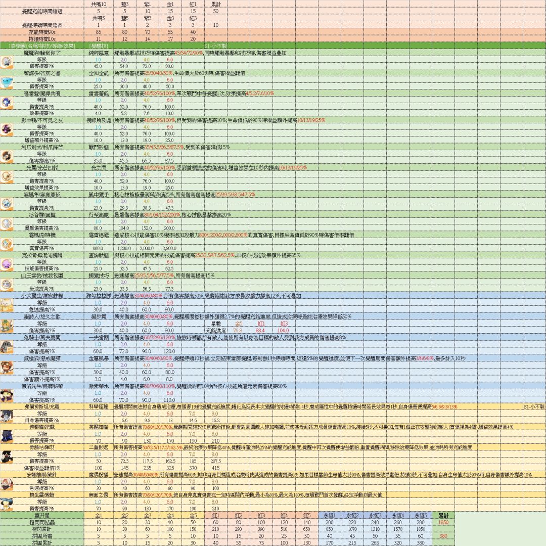 骨鸦有二次觉醒时增益翻倍的设定。红3+全自动时,轴为前10秒一次觉醒,增幅为1.625。10-30秒为二次觉醒,增幅翻倍,为3.25。30-50秒为空档期。