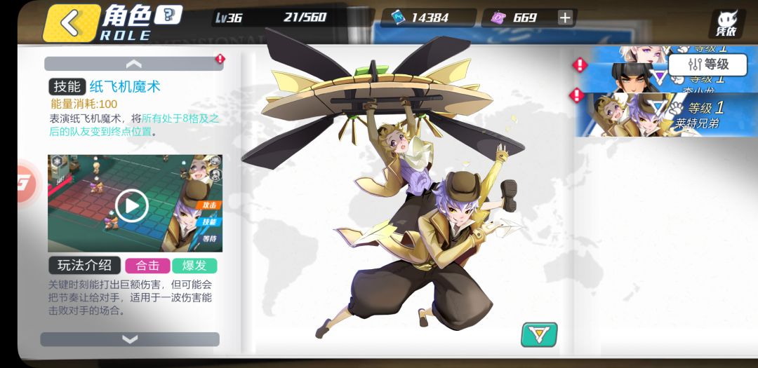 飞机流是以莱特兄弟为核心一种打法,利用莱特兄弟的技能——纸飞机魔术,将我方8格以后的所有队友拉至终点,打出最高四合击的高额伤害。