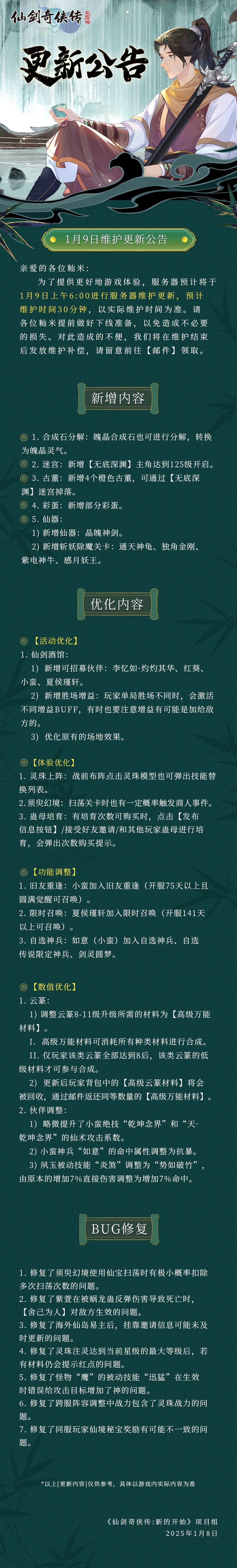 1月9日维护更新公告