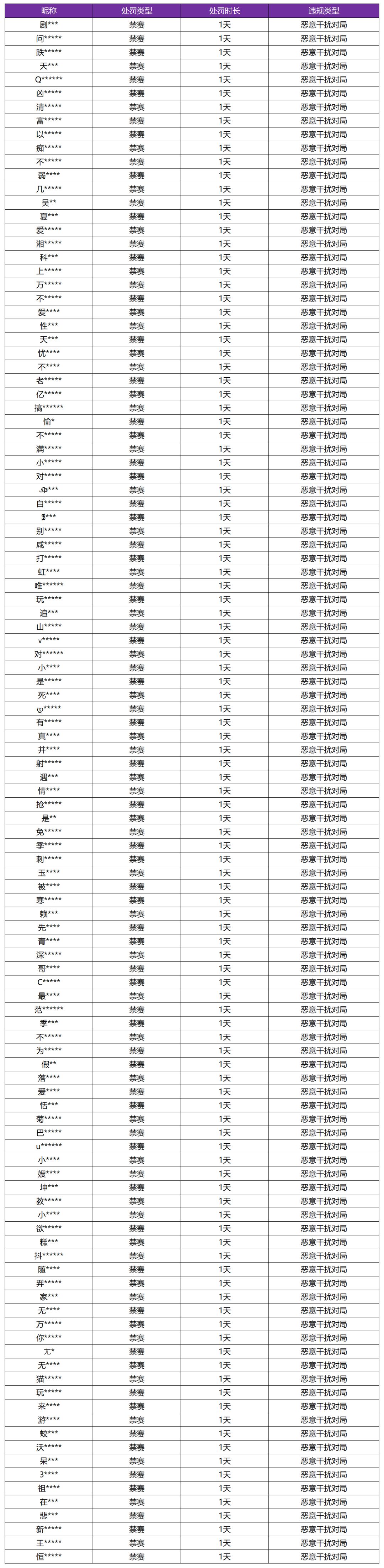 附:1月8日恶意干扰对局名单(部分)