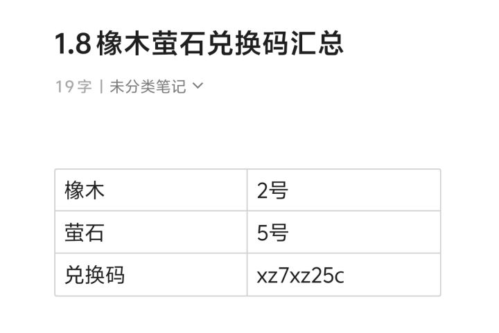 1.8橡木萤石兑换码汇总 评论区复制