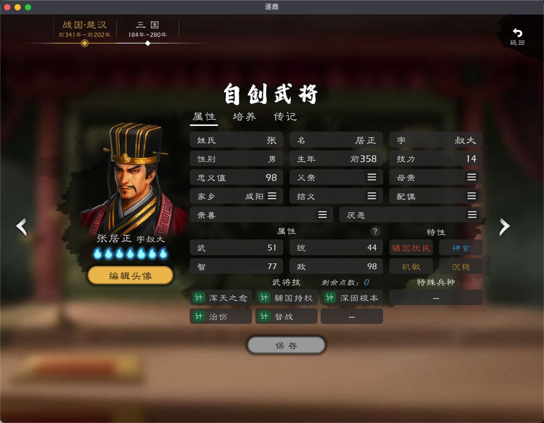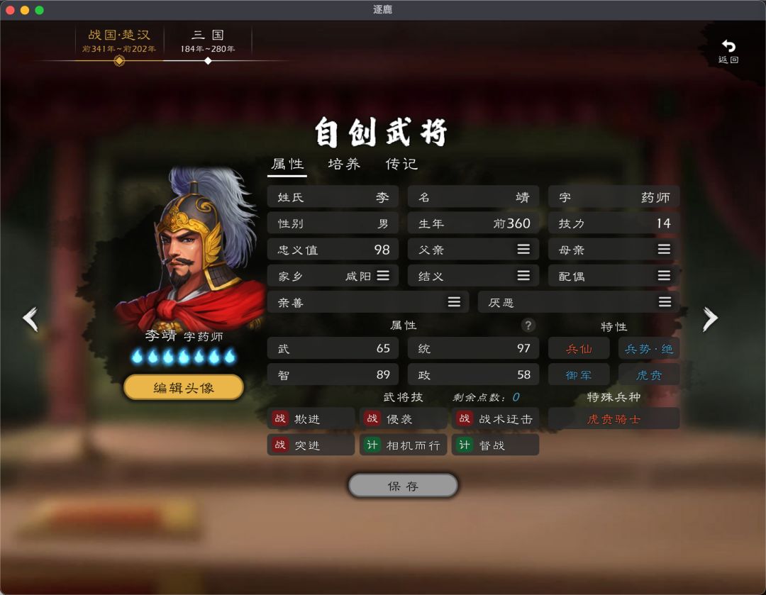 因为分配自建武将太累,暂时只导出了唐和西汉势力,后续再看情况导出其他势力。(自建剧本支持保存选择势力的万人血书 +1111111111,导入武将真的太累了