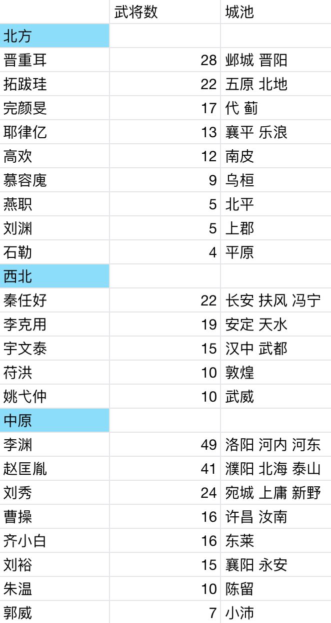 大一统时期 3 座城,历史上占据半壁江山的势力 2 座城,地方割据政权 1 座城,另外剩余三座空城