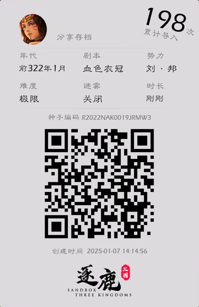 注:使用本剧本需要购买自建地图以及战国、楚汉的 DLC,地图使用了群里大佬分享的极大地图